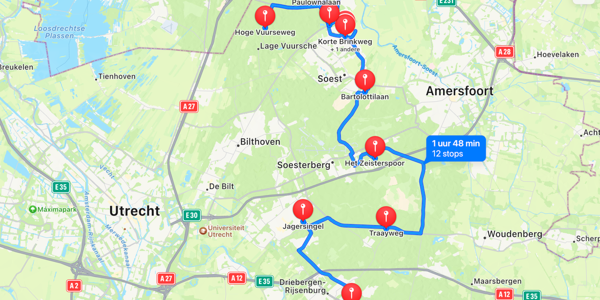 De route start bij Kasteel Groeneveld in Baarn en via Soest, Zeist kom je uiteindelijk uit bij Huis Doorn in Doorn. Niet alleen je navigatievaardigheden worden getest, maar ook je puzzel-skills, kennis van het koninklijk huis en bingovaardigheden. De totale afstand (als je de route in één keer goed rijdt) bedraagt 64 kilometer.