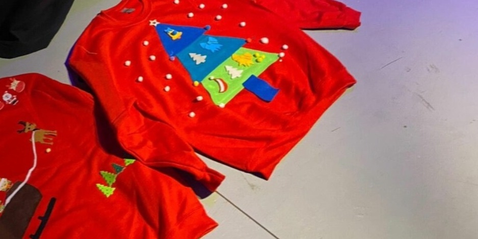 We gaan in ongeveer 1,5 tot 2 uur een kersttrui pimpen. Vooraf geef je aan of je een rode of groene trui wilt en dan kan je in de workshop aan de slag met vilt, pailletlint, diverse versieringen en kerstslingers om bijvoorbeeld een foute kerstboom of sneeuwpop op de trui vast te maken met textiellijm en naald en draad. Daarna gaan we natuurlijk met zijn allen op de foto mét foute kersttrui.